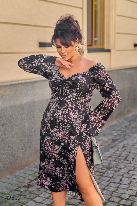 Сукня з розрізом великих розмірів 42592 чорна