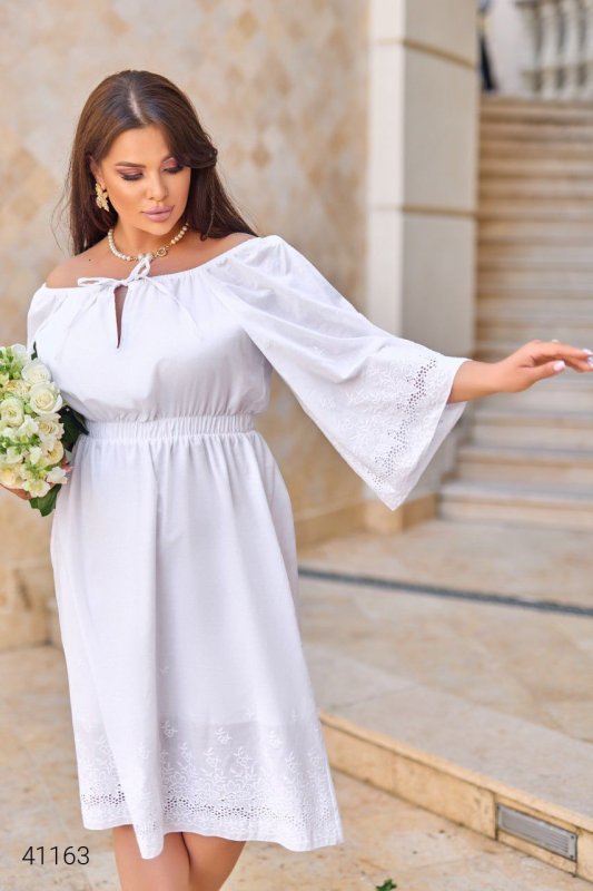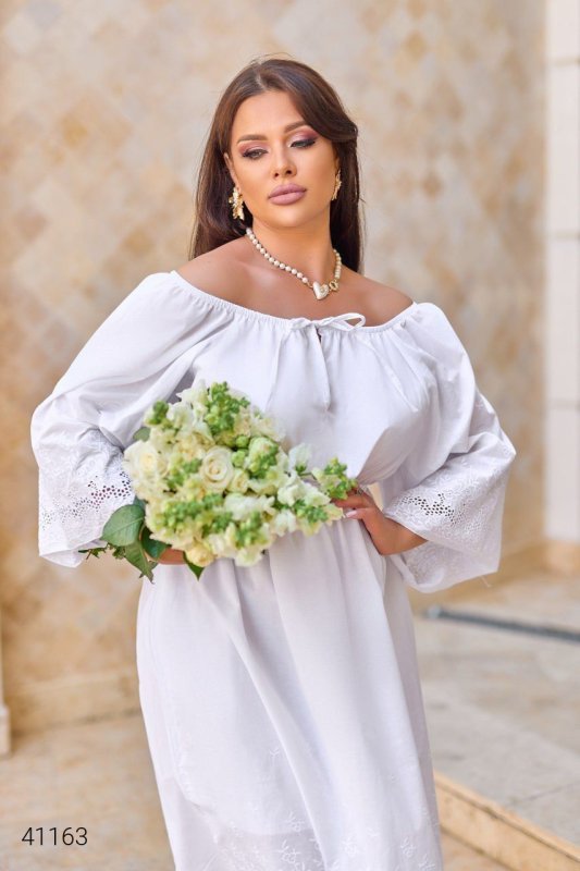 Сукня з вишивкою. Талія на резинці, довжина від талії 75 см, верх на резиночці, можна моделювати виріб-приспущені плечі або закриті. Тканина: бавовна-жатка з вишивкою, підкладка штапель (натуральні тканини).