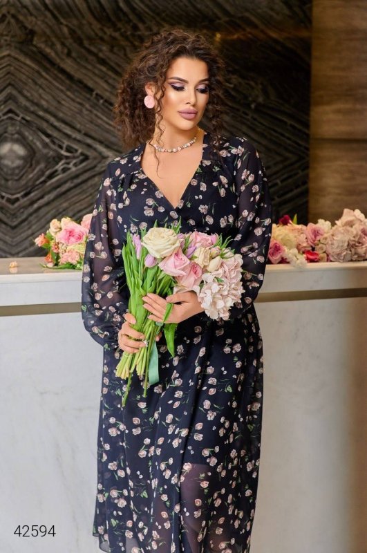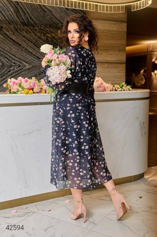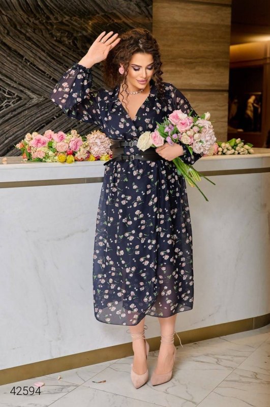 Сукня шифонова плюс сайз 42594 темно-синій