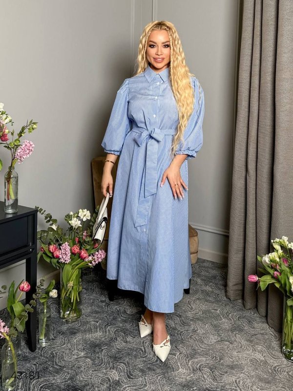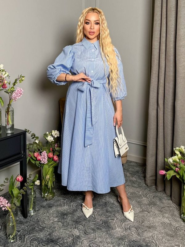 Сукня в смужку 43181 блакитна