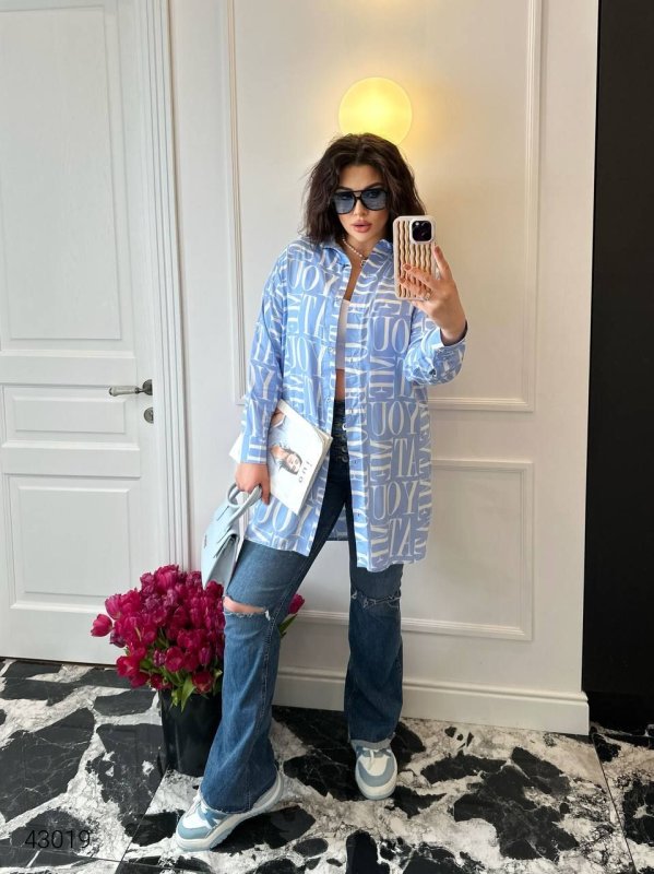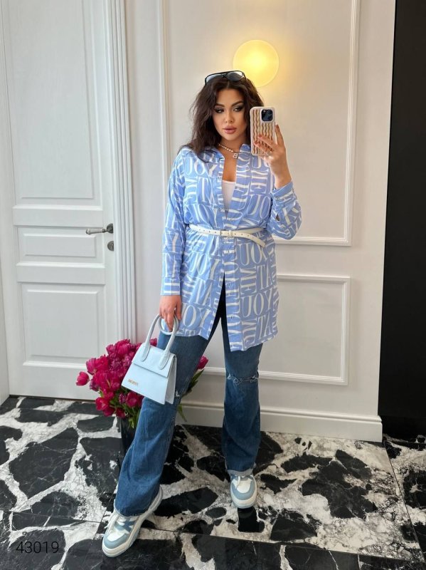 Сорочка жіноча великих розмірів 43019 блакитний