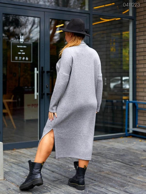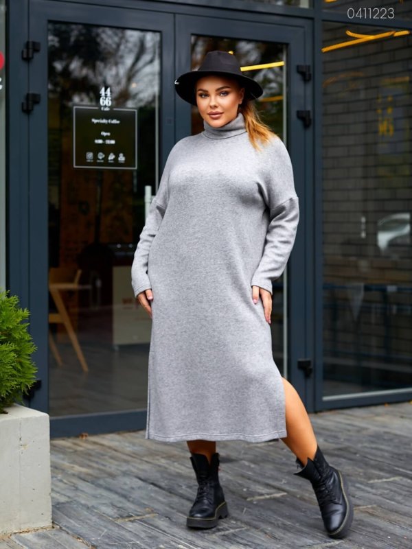 Подробиці: прямий вільний силует, високе горло, спущене плече, довгий рукав, бічні шви.