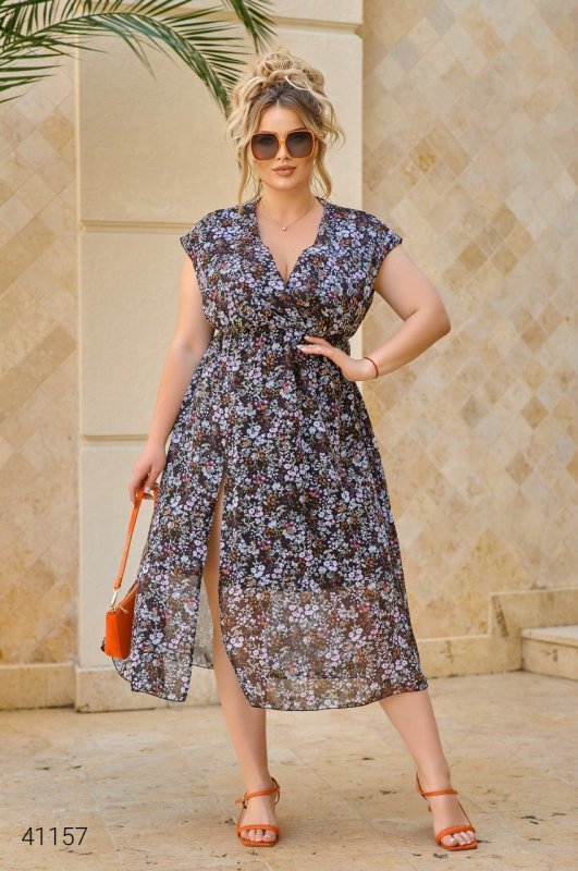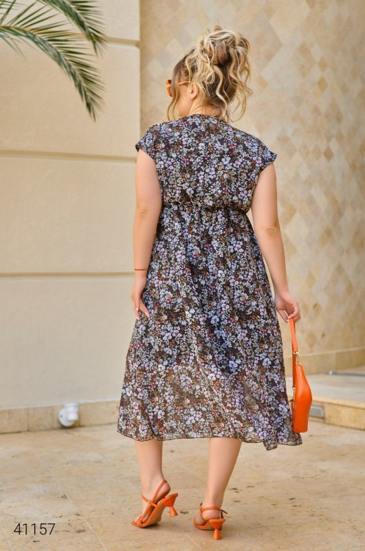 Шифонова сукня великих розмірів. Талію на гумці. Тканина: шифон із підкладом.