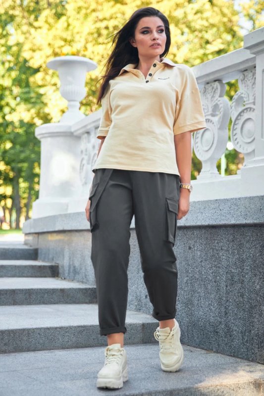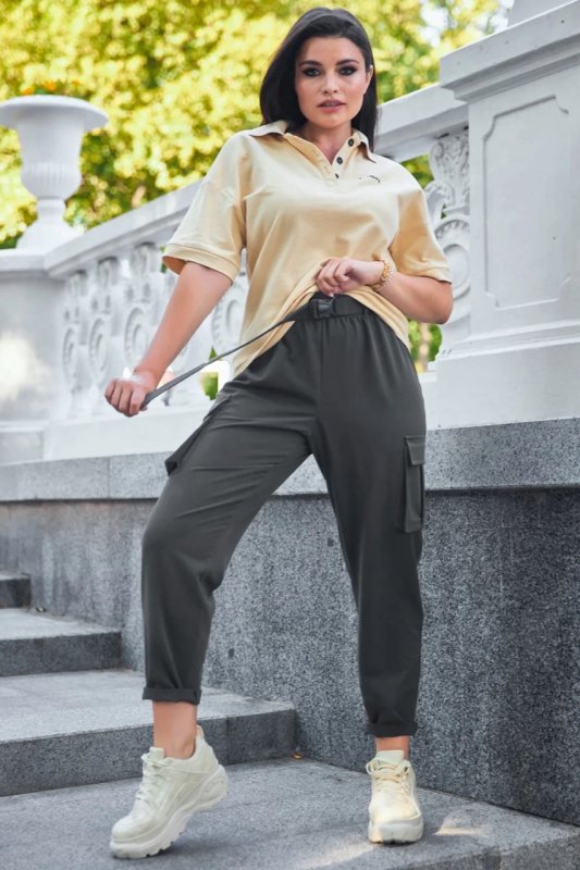 Широкі штани-банани з колекції Goodbye summer plus size зроблять образ стильним та одночасно комфортним. Модель має високу посадку та доповнена знімним текстильним поясом із пряжкою. Збоку розташовані креативні накладні кишені-книжка з бантовою складою та клапаном. Наші дизайнери обрали практичну та зручну тканину – тіар.