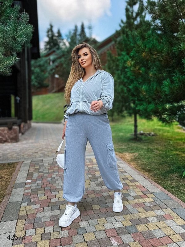 Штани карго жіночі великих розмірів 42574 сірий