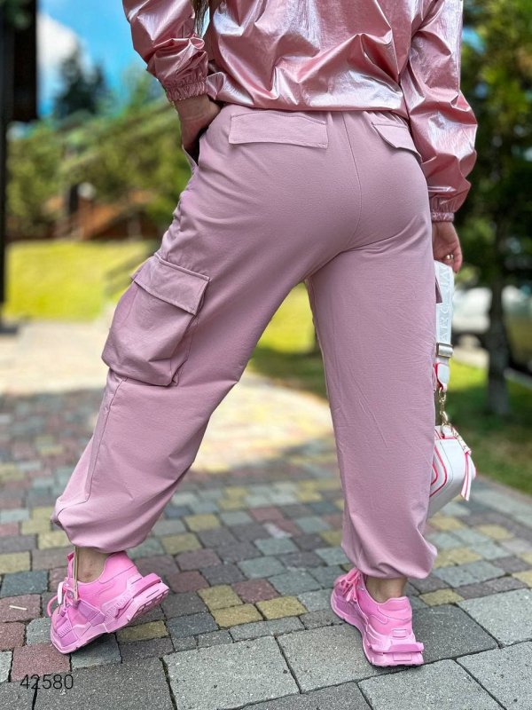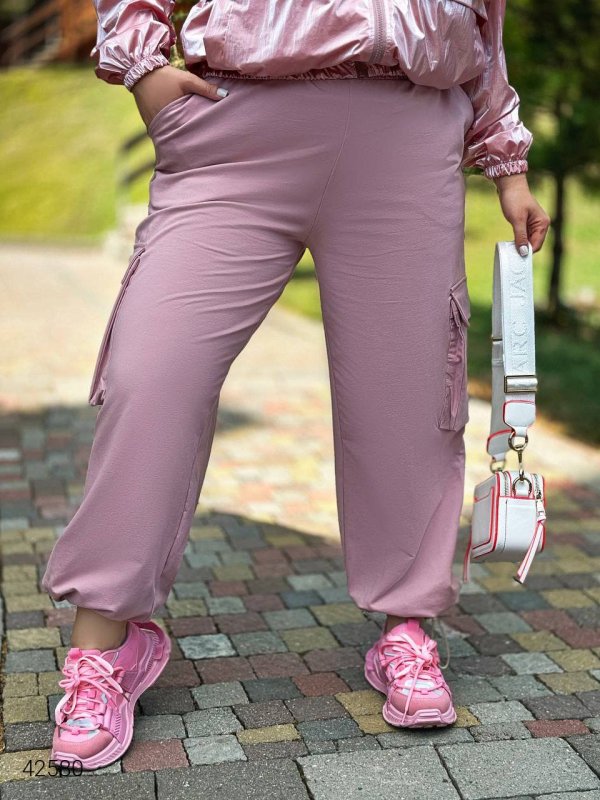 Штани карго жіночі великих розмірів. Знизу затяжка, яка дозволяє робити їх прямими або з ефектом манжета. Тканина: двонить віскоза.