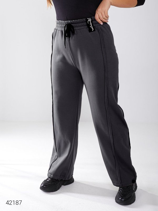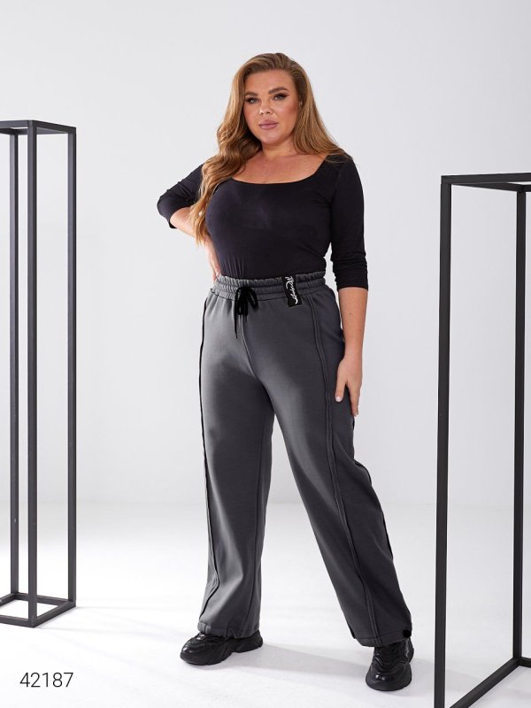 Штани жіночі теплі. Можна носити штани, як прямі, так і як спортивні, зафіксовуючи внизу затяжками. Тканина: трикотаж трьохнитка з начосом.