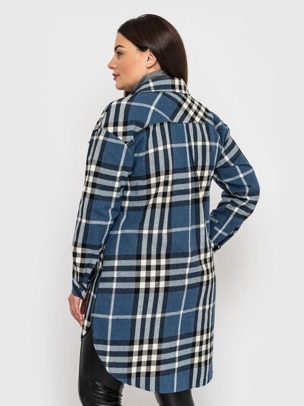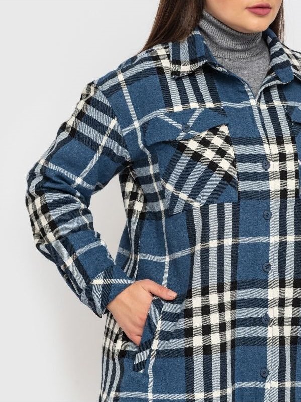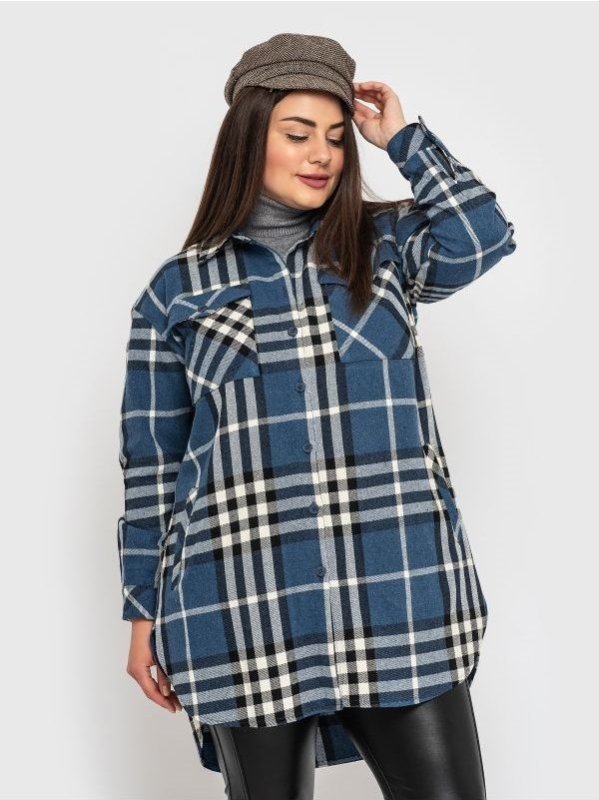 Об'ємна сорочка-туніка з байки середньої щільності. Злегка спущений рукав, манжети на ґудзиках. З боків кишені з листочками. Нагрудні кишені з клапанами на ґудзиках. Спинка трохи подовжена, по бічних швах розрізи. Застібається на гудзики.