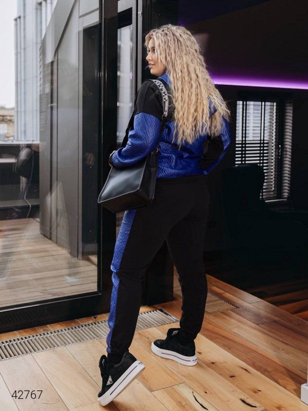 Спортивний костюм жіночий зі вставками з еко шкіри 42767 синій