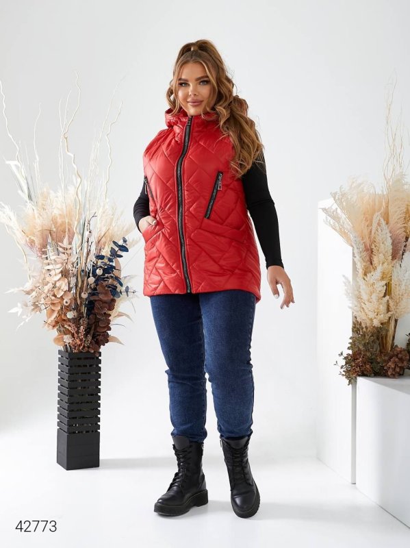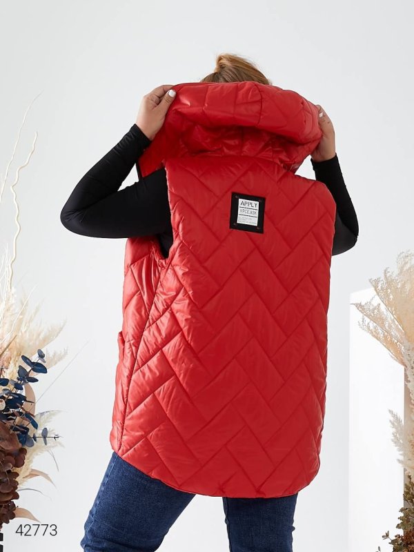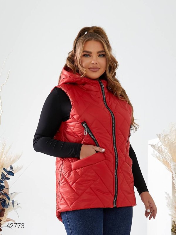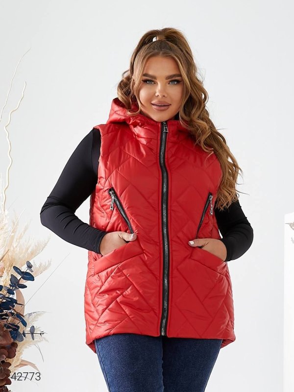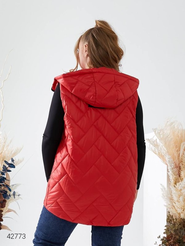 Стьобана жилетка жіноча. Стильна стьобана жилетка з кишенями, зручним глибоким капюшоном та якісною фурнітурою.