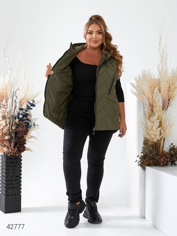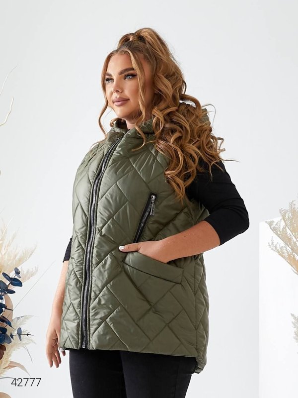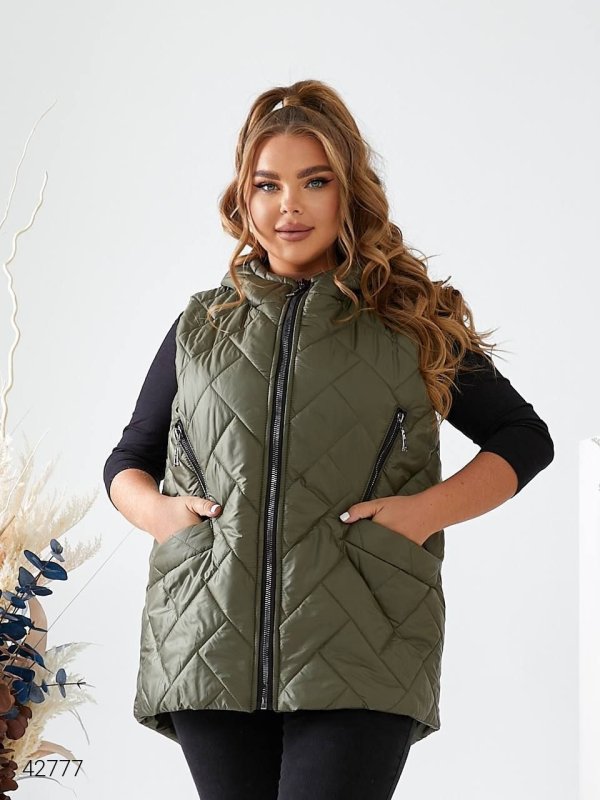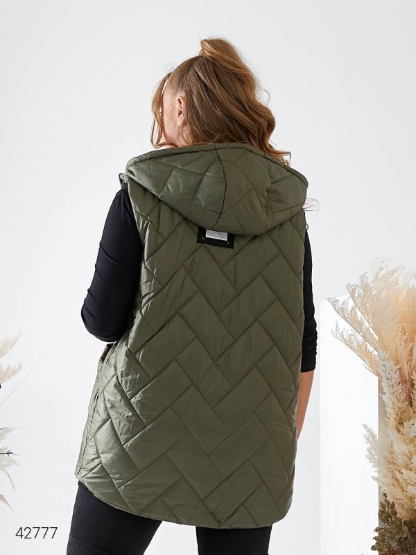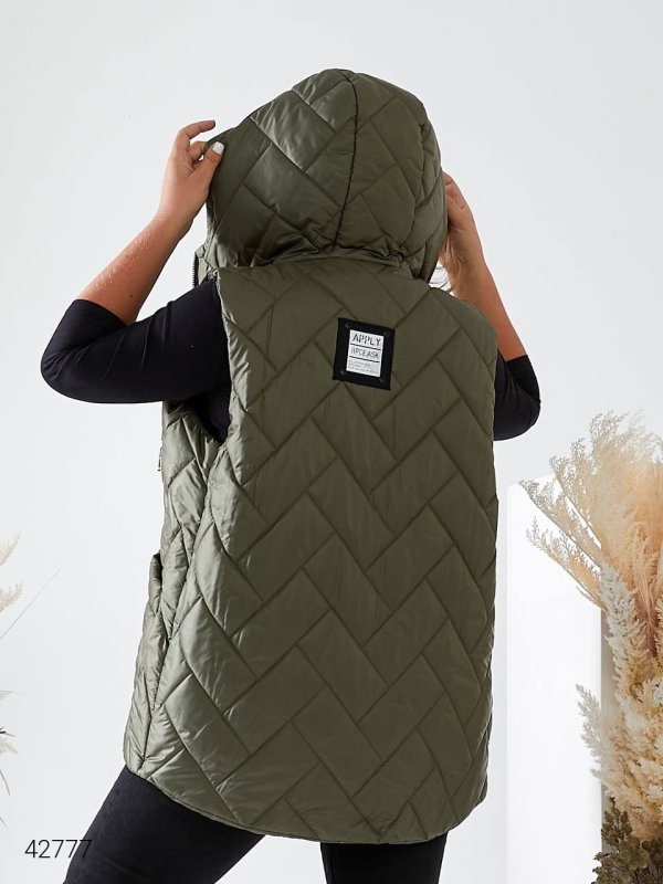 Стьобана жилетка жіноча. Стильна стьобана жилетка з кишенями, зручним глибоким капюшоном та якісною фурнітурою.