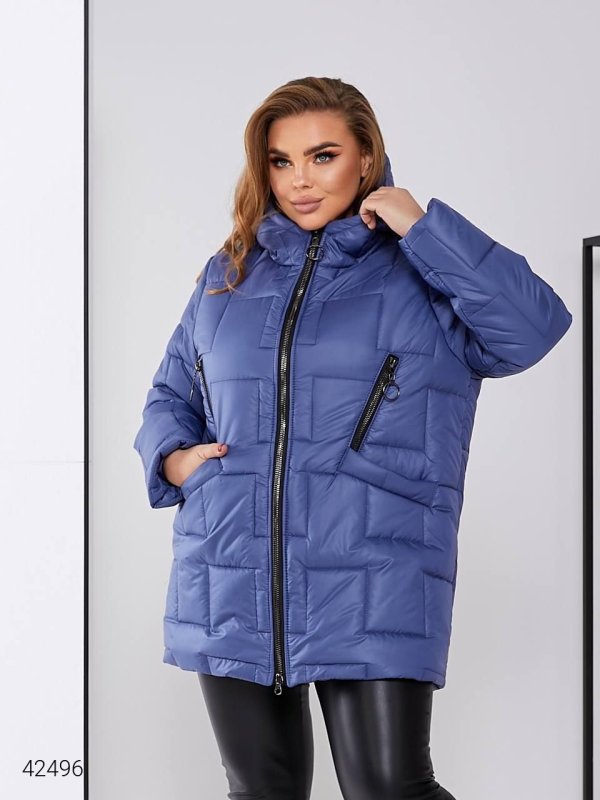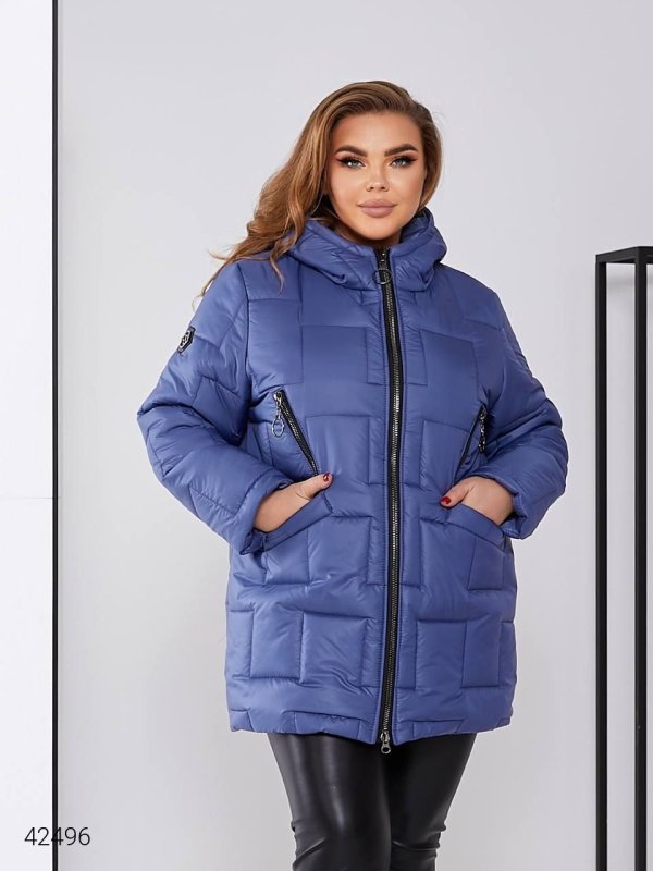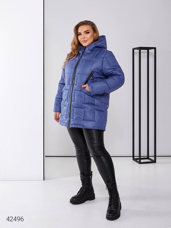 Стьобана жіноча куртка. Стьобана куртка прямого крою з великим капюшоном та якісною фурнітурою.
