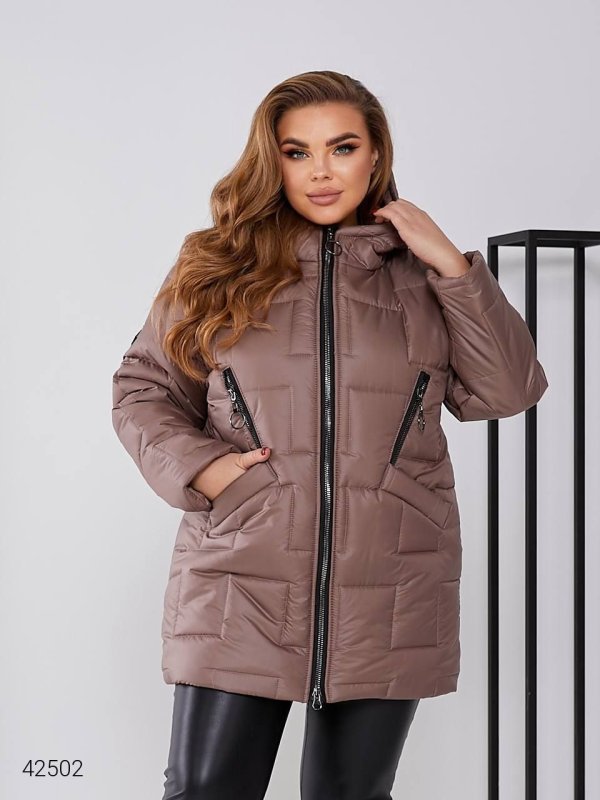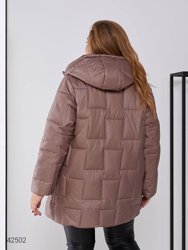 Стьобана жіноча куртка. Стьобана куртка прямого крою з великим капюшоном та якісною фурнітурою.
