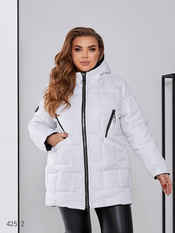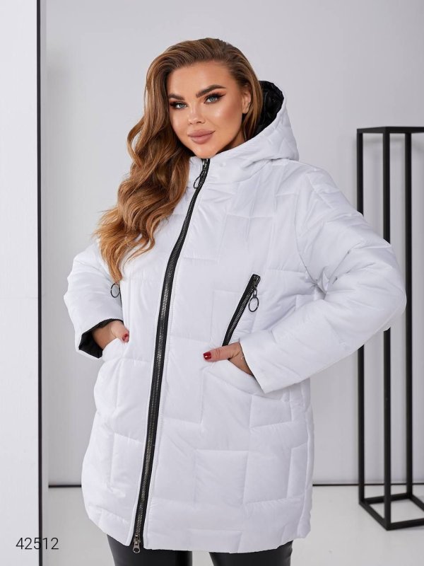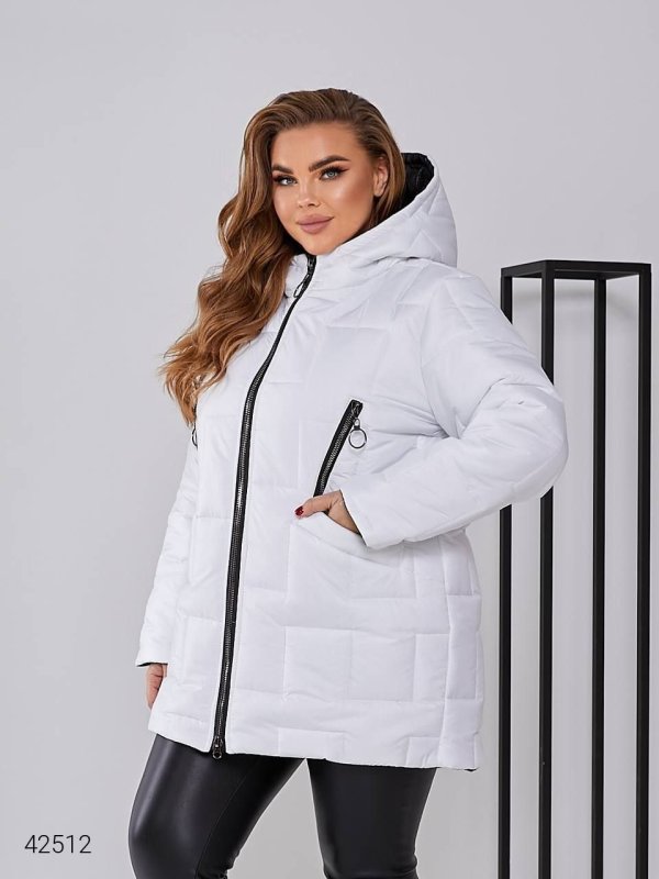 Стьобана жіноча куртка. Стьобана куртка прямого крою з великим капюшоном та якісною фурнітурою.