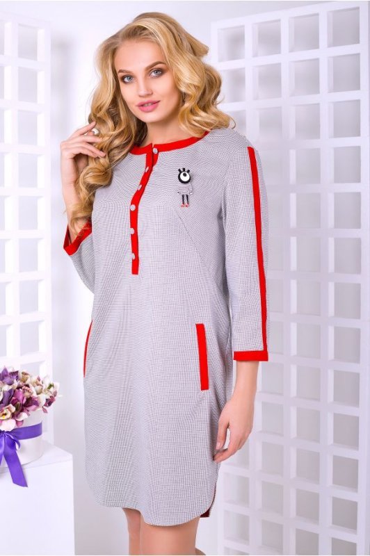 Сукня "Лівадія" (ч/б клітка+червоний)