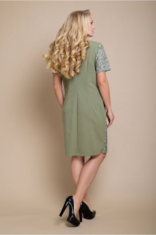 Жіноче плаття Налу відрізняється ніжним і витонченим виконанням. Модель напівприлягаючого силуету, прикрашена мереживом в тон сукні. В якості застібки використана потайна блискавка по центру спинки.