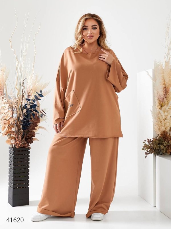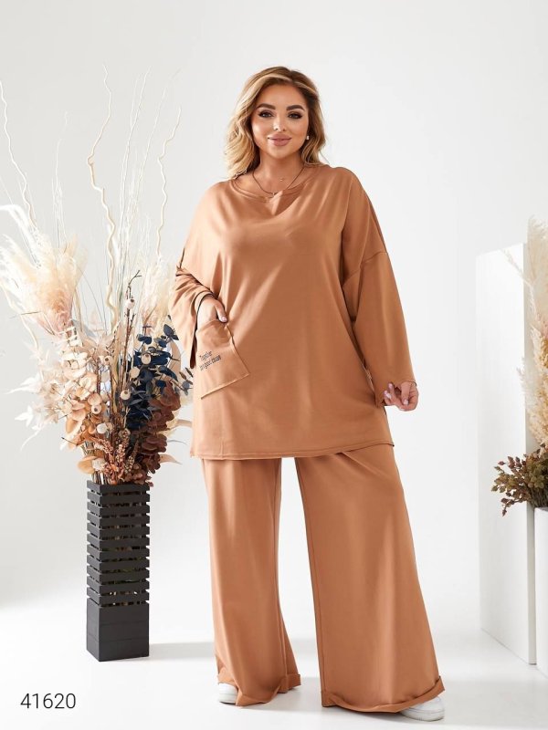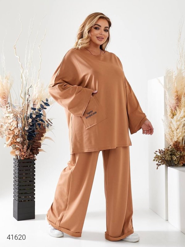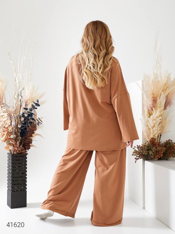 Вільний жіночий костюм великих розмірів 41620 бежевий