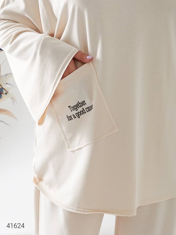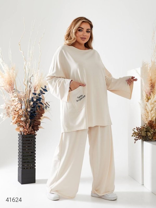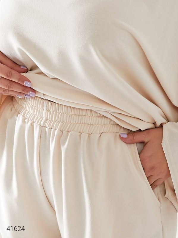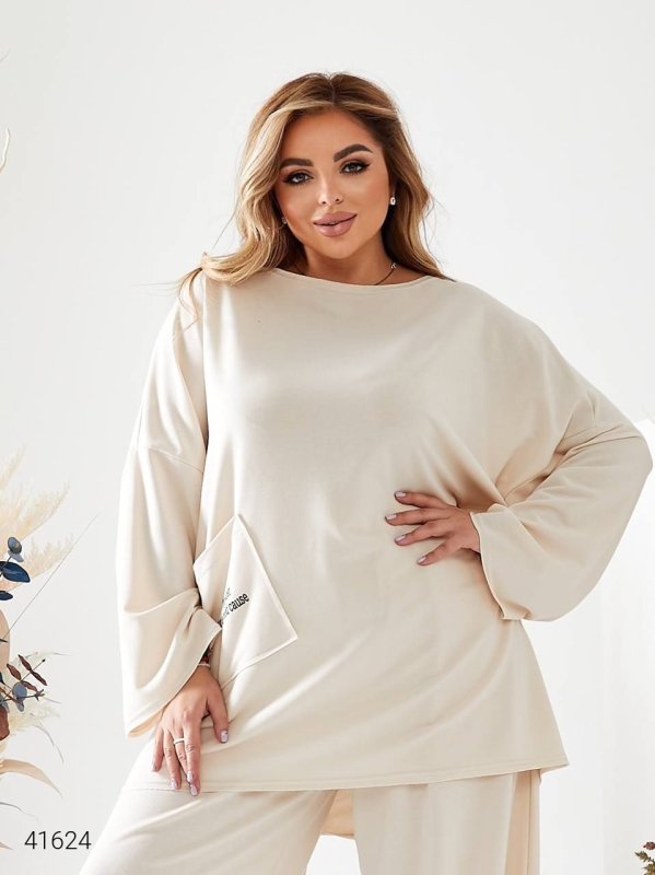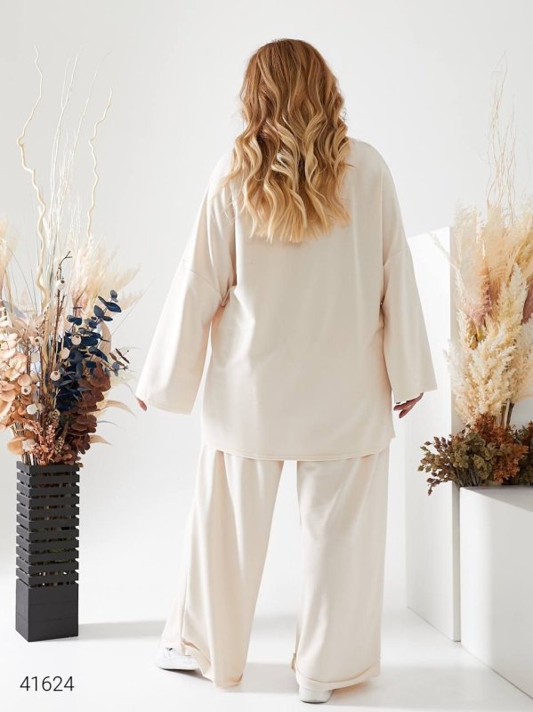 Вільний жіночий костюм великих розмірів 41624 світло-бежевий