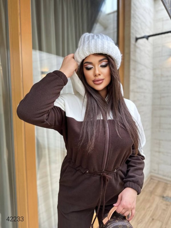 Жіночий теплий комбінезон. На поясі гумка з затяжкою.Тканина: фліс полар