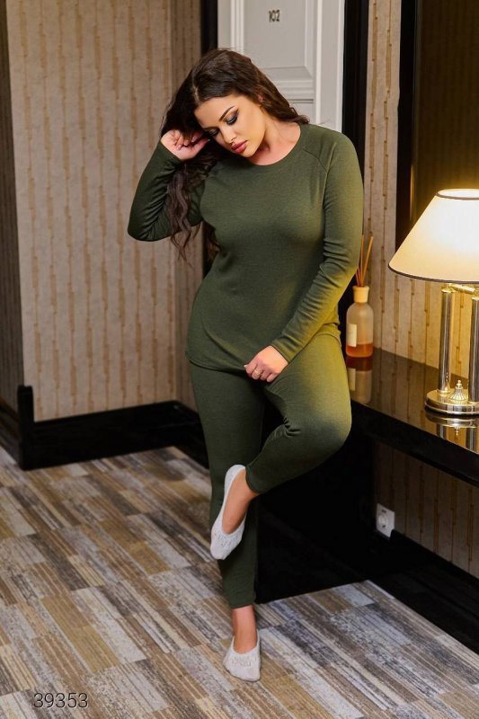 Орієнтовні заміри по готовому виробу: 42-46 (кофта: ог 94, от 78, спинка 63, рукав 73; штани: от 66-100, об 94, длина 95/75), 48-50 (кофта: ог 100, от 94, спинка 64, рукав 84; штани: от 72-105, об 106, длина 96/76), 52-54 (ог 106, от 98, спинка 65, рукав 75; штани: от 72-110, об 112, длина 97/77), 56-58 (ог 110, от 102, спинка 66, рукав 76; штани: от 78-115, об 118, длина 98/78), 60-62 (ог 114, от 106, спинка 67, рукав 77; штани: от 82-120, от 124, довжина 99/79). Вимірювання зроблено в не розтягнутому вигляді. Розтяжність тканини до +10 см.