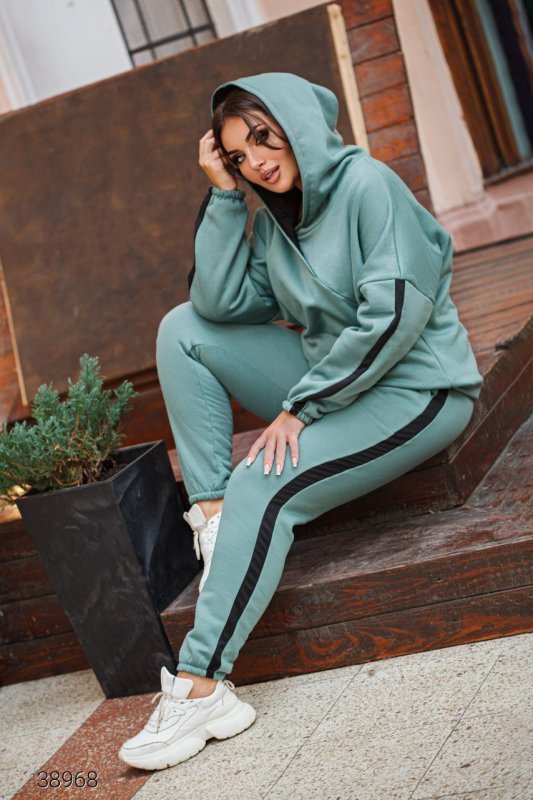 Спортивний костюм з лампаси. Худі з капюшоном та штани. Тканина: трикотаж тринити з начісом тедди.