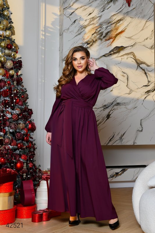Вечірня сукня на запах. Сукня у вечірньому стилі із софту (розтяжності немає). Ліф сукні виконаний на запах, рукав втачний, низ рукава та талія на резинці. Пояс із основної тканини в комплекті.