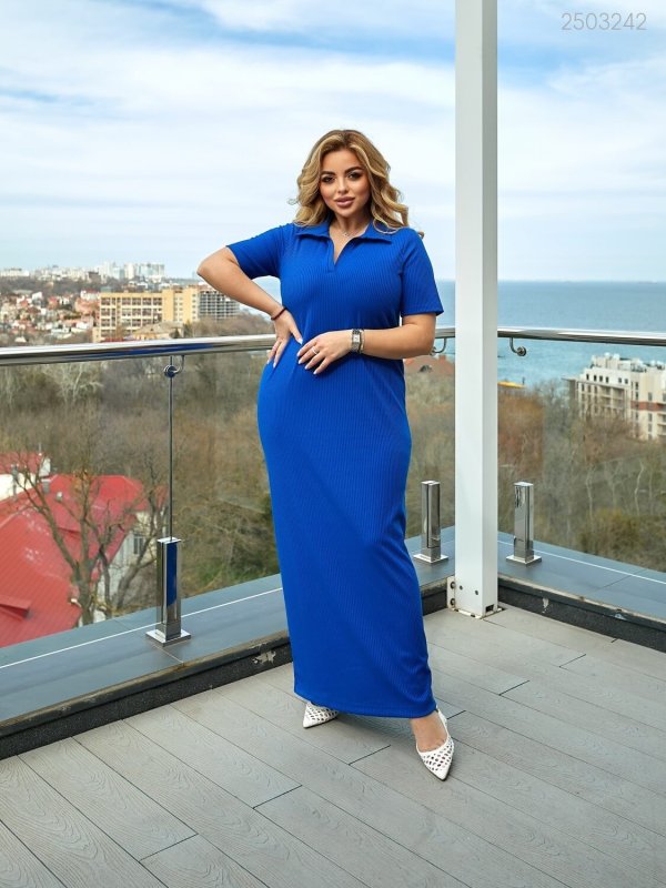 Деталі: сукня-поло довжиною максі з втачним рукавом та коміром.