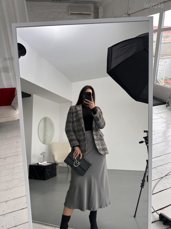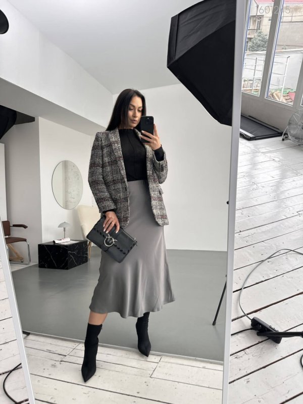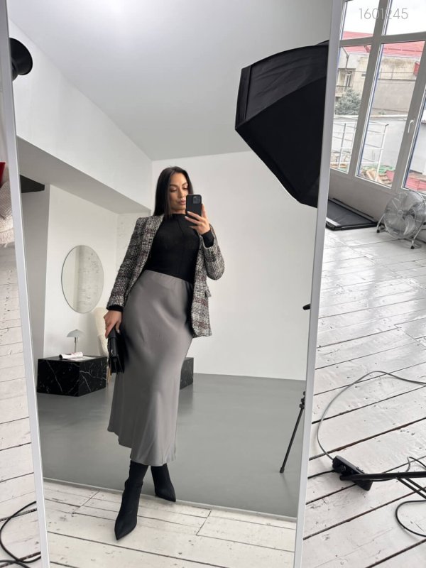 Деталі: спідниця покроєна по косій, за рахунок чого набуває форми тіла, з поясом на гумці, без кишень.