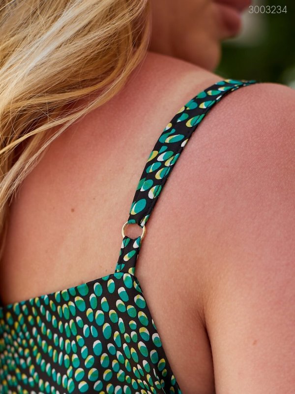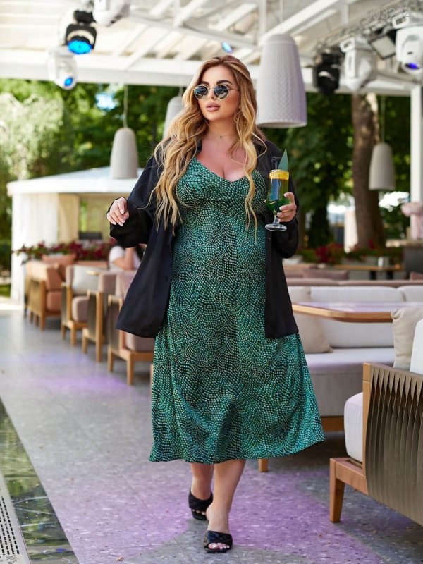 Деталі: сукня довжиною міді з глибоким декольте, бретельками, що регулюються.