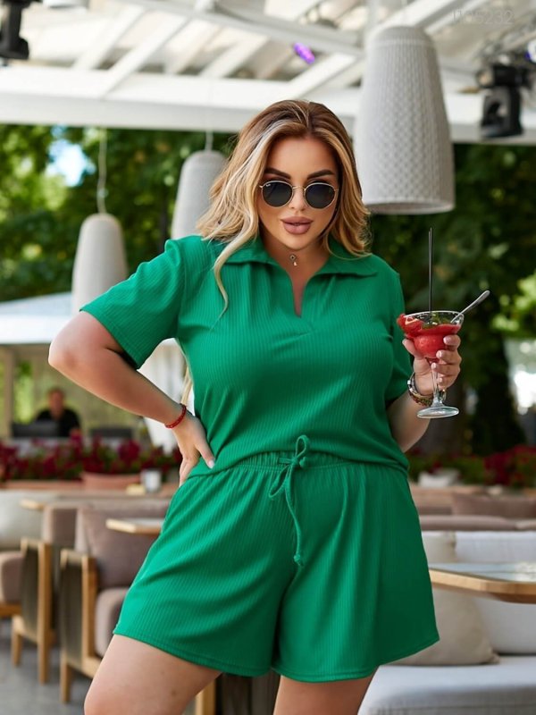 Деталі: футболка-поло з відкладним коміром, шорти-спідниця з поясом на резинці з функціональною зав'язкою та місткими кишенями.