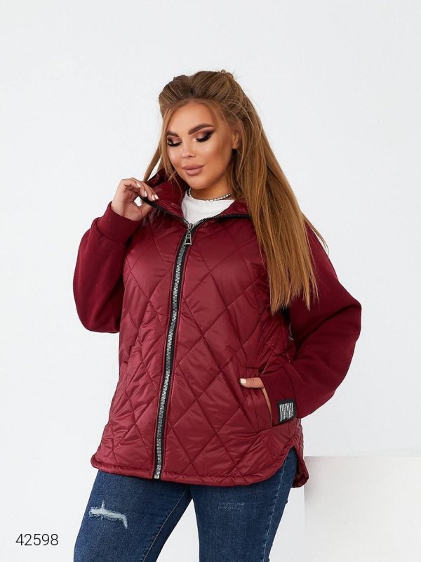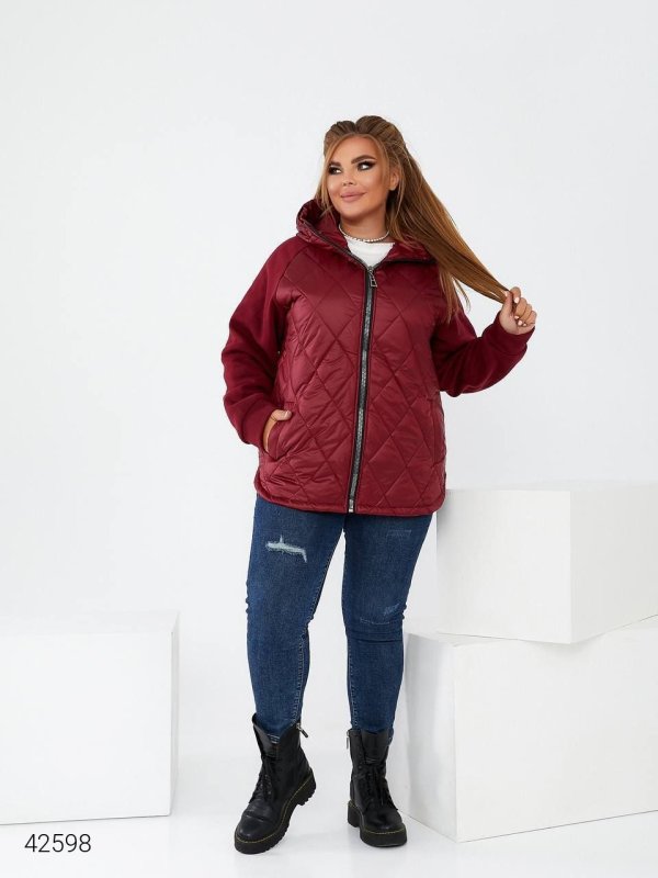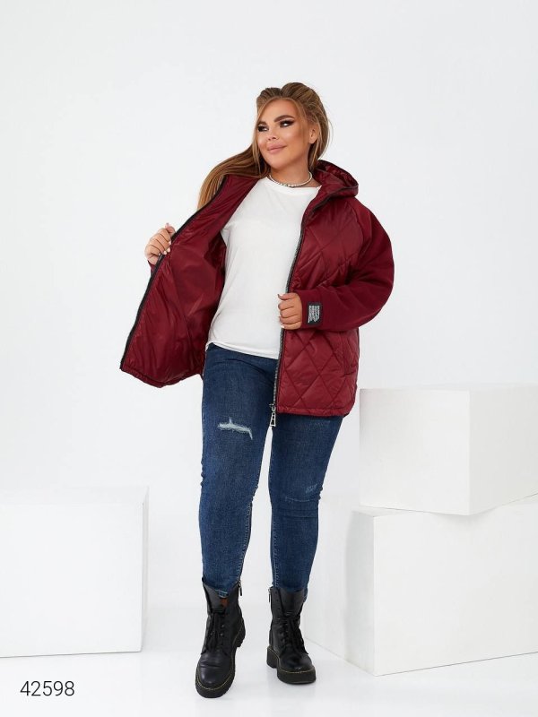Жіноча куртка демісезонна великих розмірів 42598 бордовий