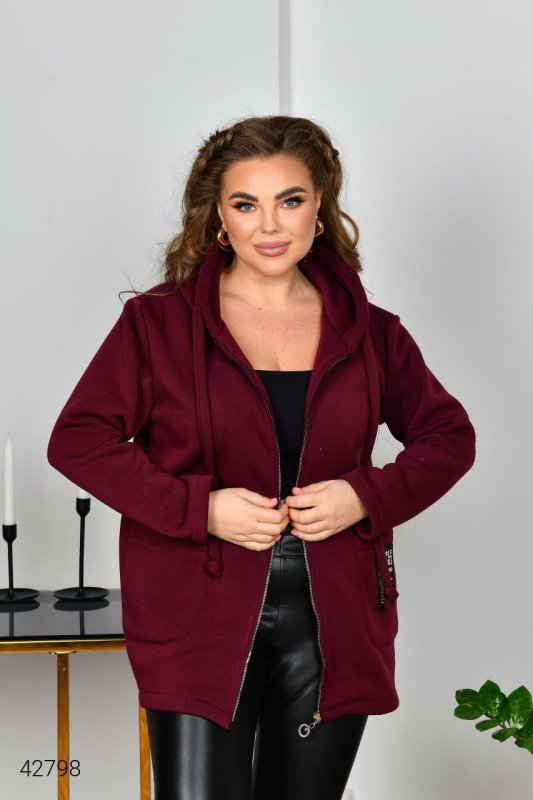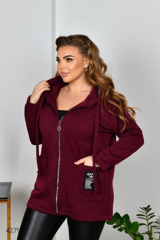 Жіноча кофта плюс сайз на блискавці 42798 бордовий