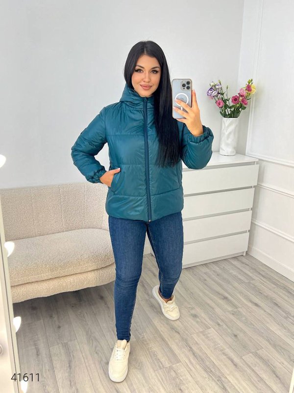 Жіноча куртка великих розмірів. Каптур не знімається. Тканина: плащівка, утеплювач синтепон 150 г/м2.