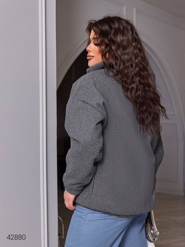 Жіноча куртка великих розмірів. Куртка з малюнком - ялинка. Застібається на блискавку. Підкладки немає.