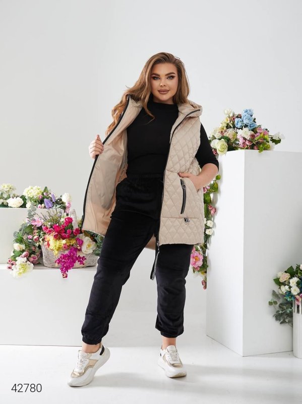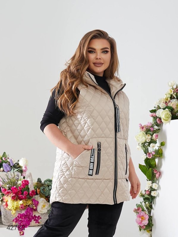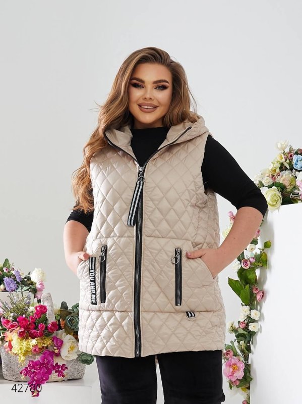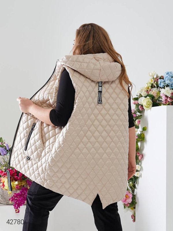 Жіноча стьобана жилетка. Стильна стьобана жилетка з накладними кишенями, зручним глибоким капюшоном та якісною фурнітурою.