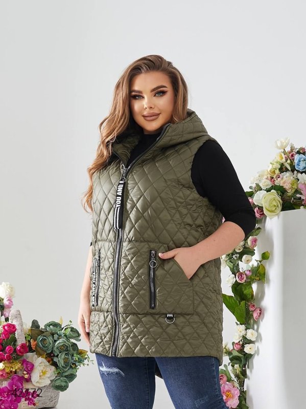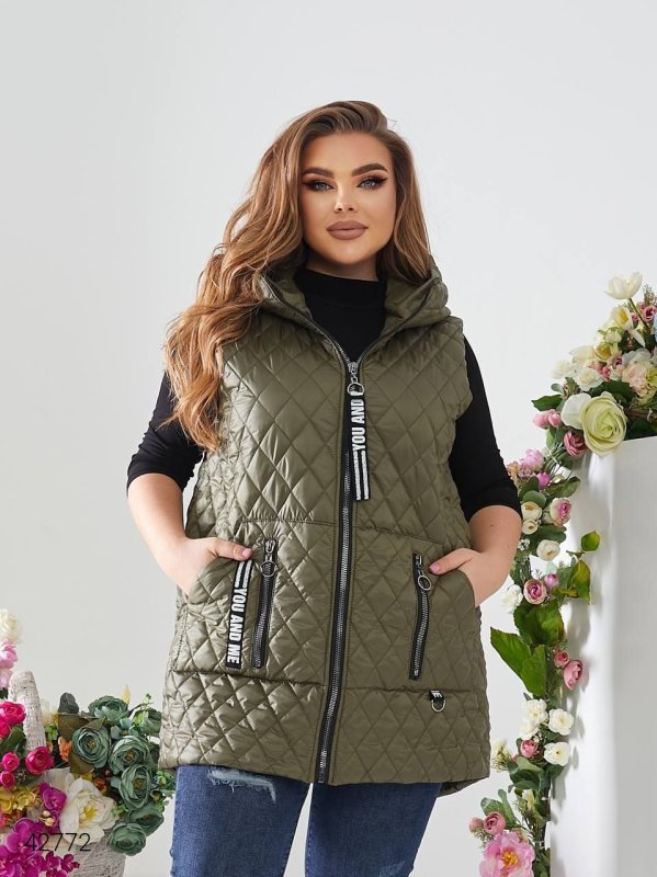 Жіночий стьобаний жилет великих розмірів 42772 хакі