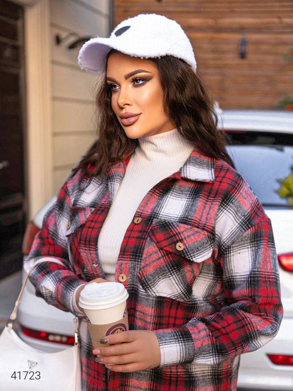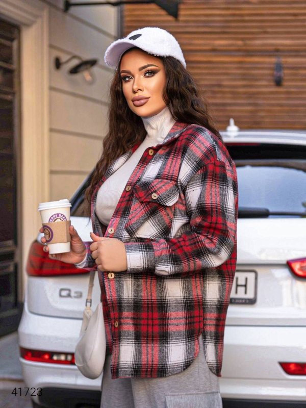 Жіноча тепла сорочка в клітку 41723 малиновий