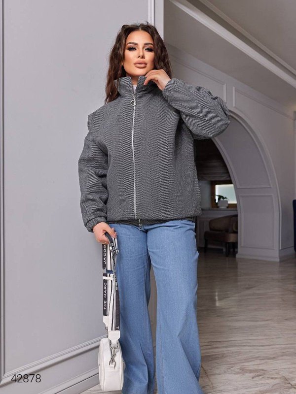 Жіноча куртка утеплена. Куртка з малюнком - ялинка. Застібається на блискавку.