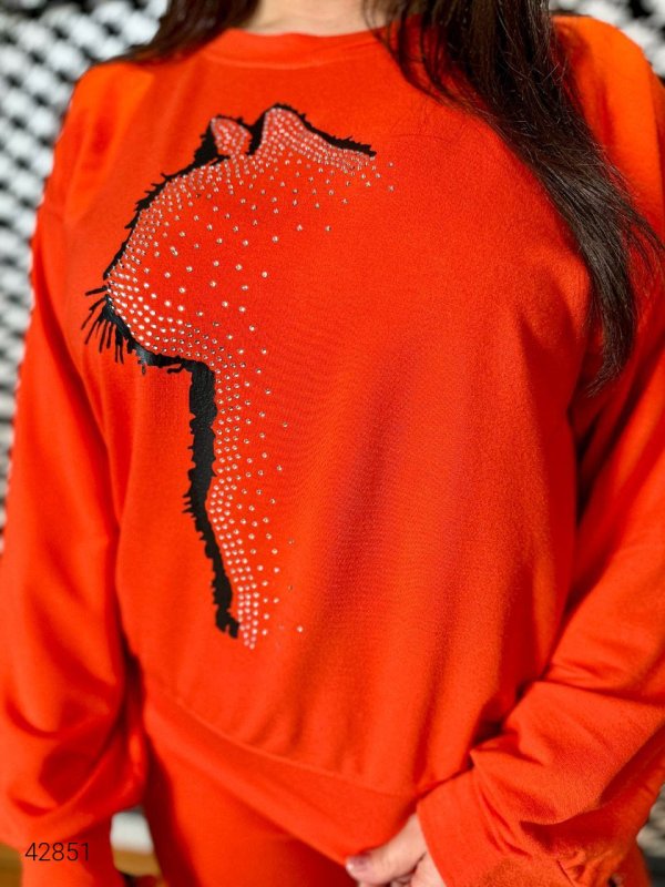 50-52 (ОГ – 120 см, ОТ по манжету кофти - 110 см, ОТ по гумці штанів - 80 см (у розтягнутому 120 см), ОС - 120 см. Довжина штанів - 100 см, кофти - 61 см)