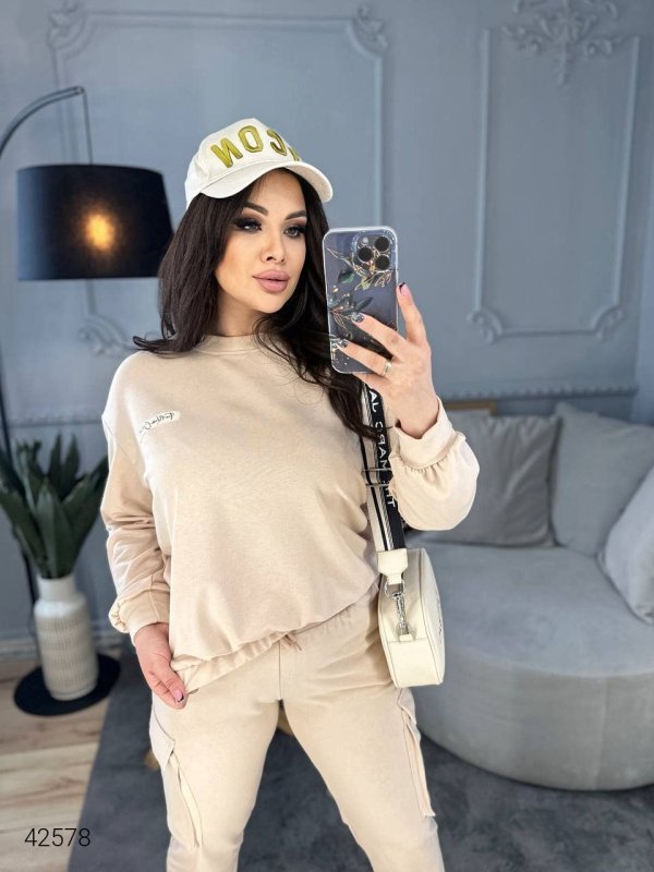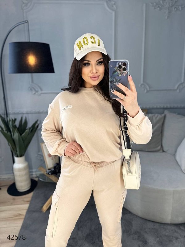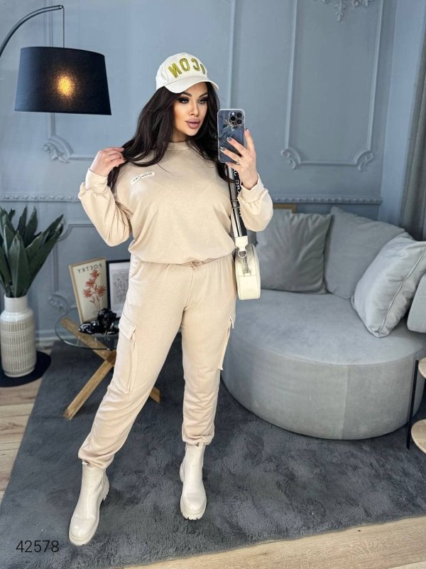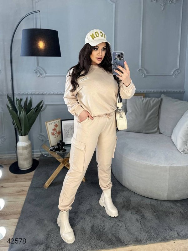 Жіночий костюм великих розмірів 42578 бежевий