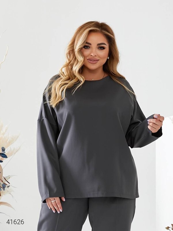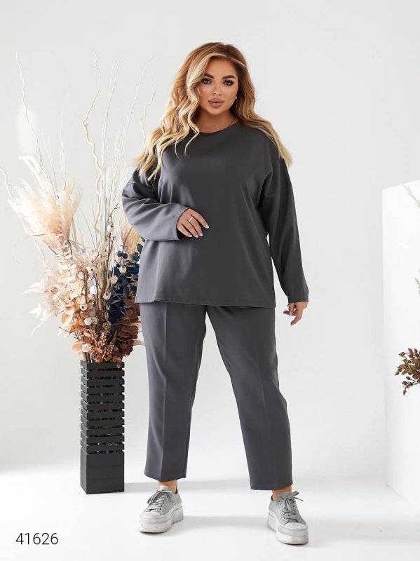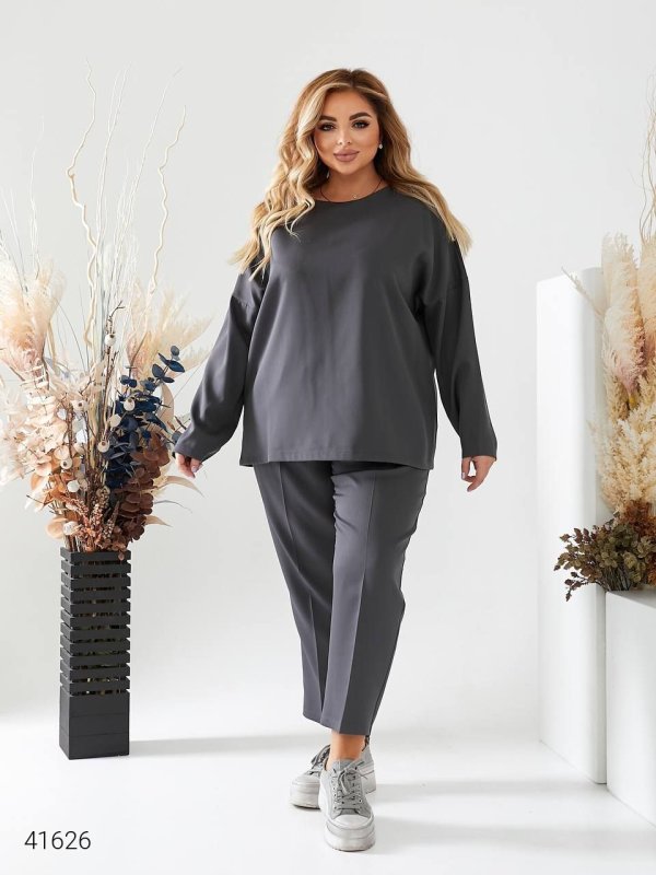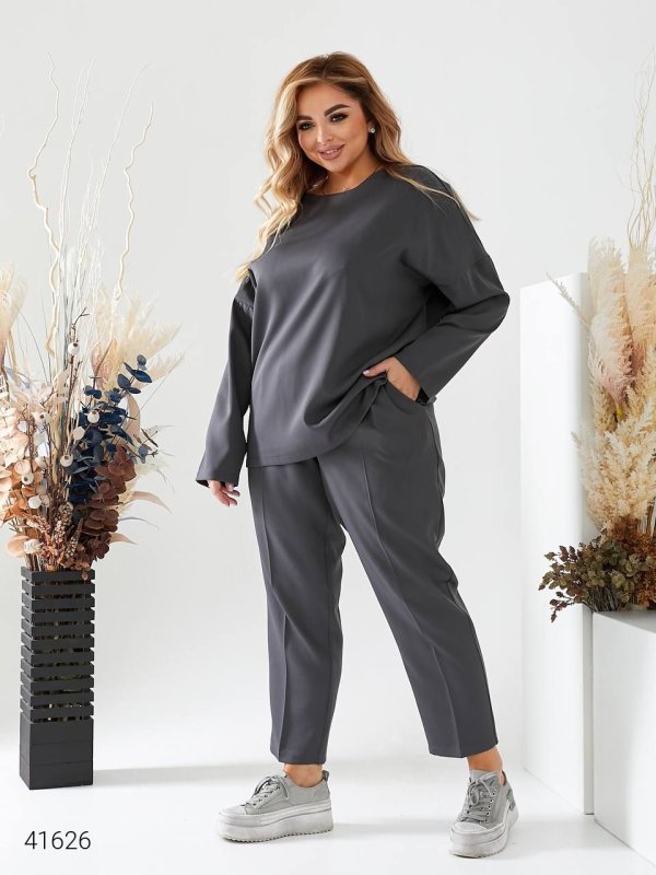 Жіночий костюм із брюками. Брюки позаду на резинці. Тканина: костюмний трикотаж.