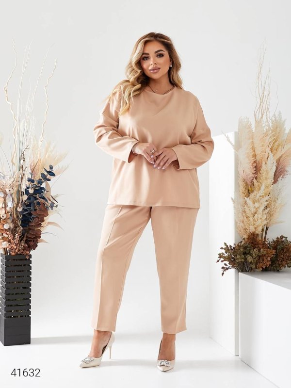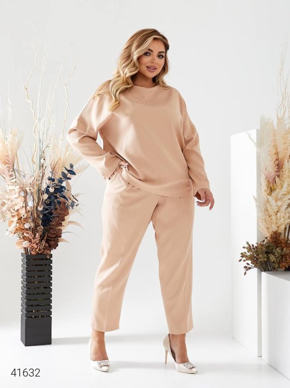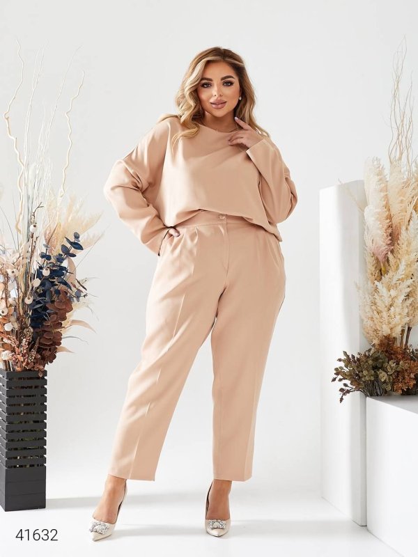 Жіночий костюм з брюками 41632 бежевий