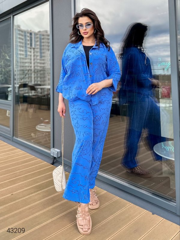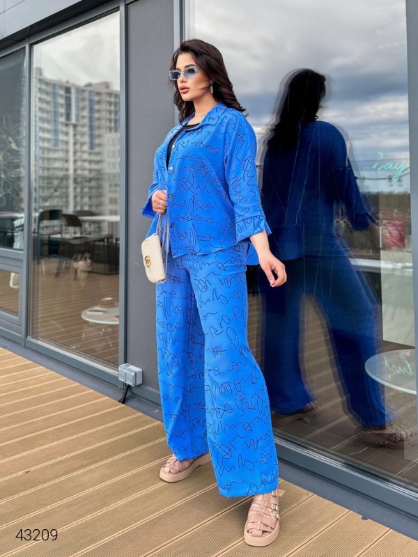Костюм жіночий з принтом. Сорочка та штани палацо в модному принті.
