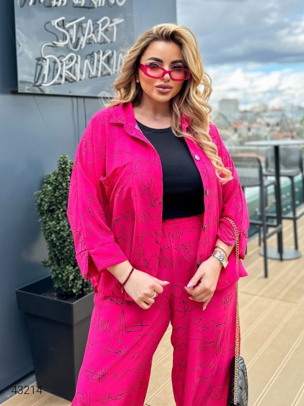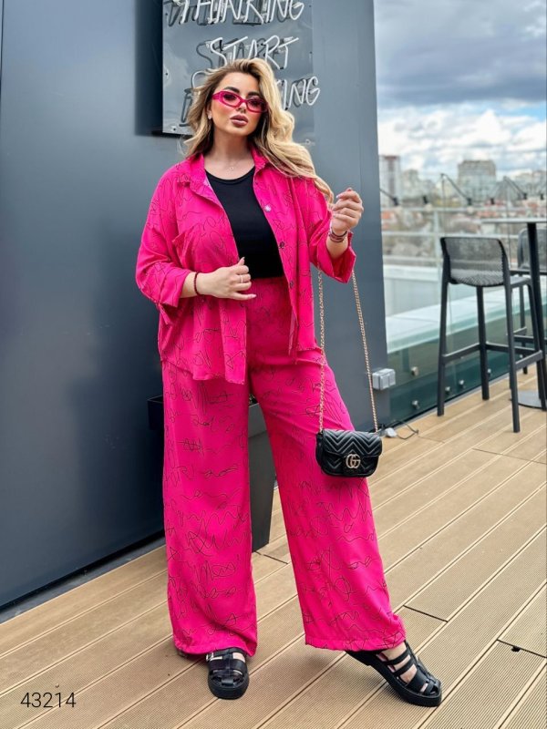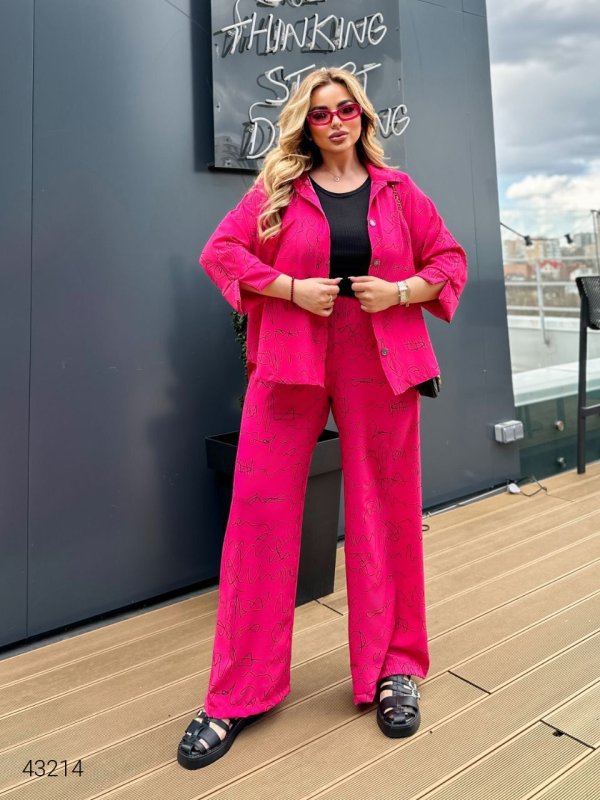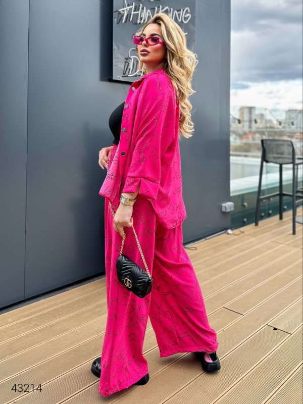 Костюм жіночий з принтом. Сорочка та штани палацо в модному принті.