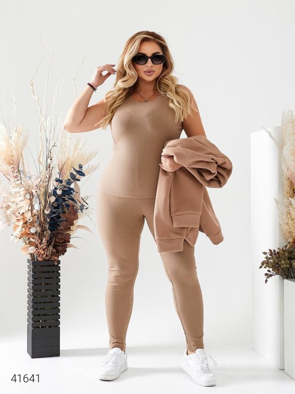 Жіночий костюм трійка 41641 бежевий