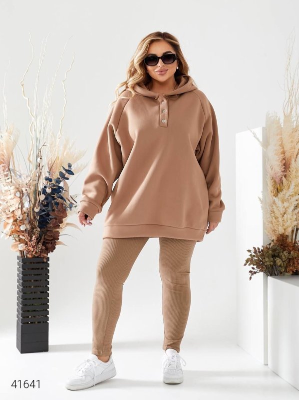 Тканина: худи - трикотаж тринитка з начісом, майка та лосини - трикотаж рубчик.