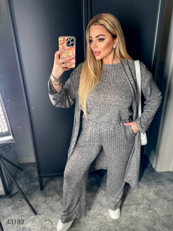 Жіночий костюм трійка. Кардиган, футболка та штани.