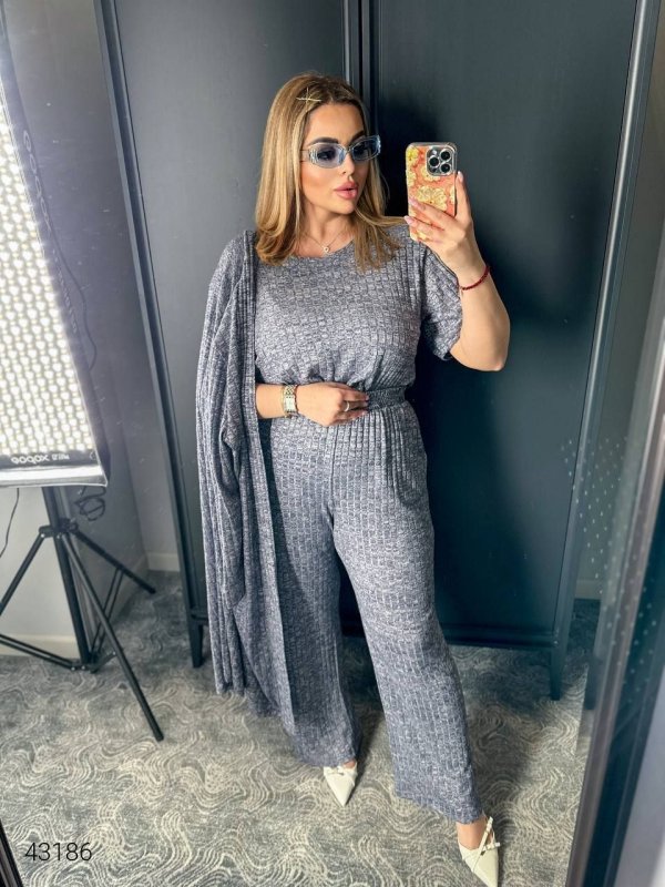 Жіночий костюм трійка. Кардиган, футболка та штани.