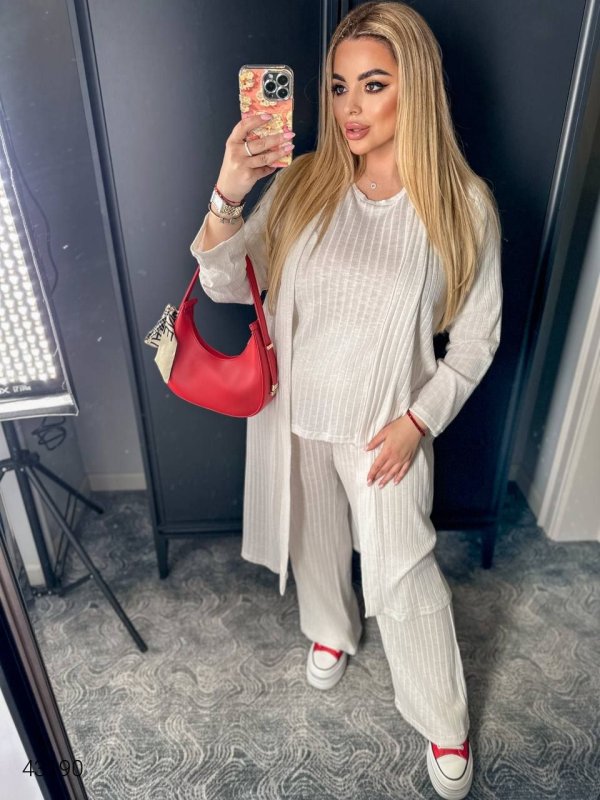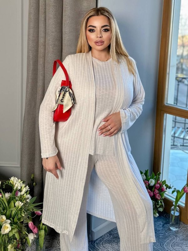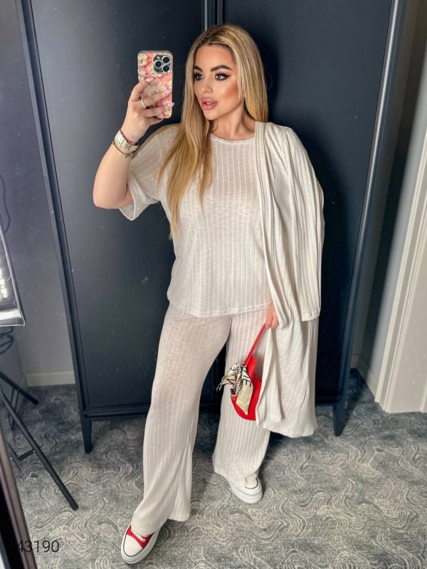 Жіночий костюм трійка. Кардиган, футболка та штани.