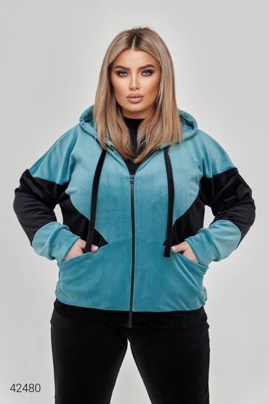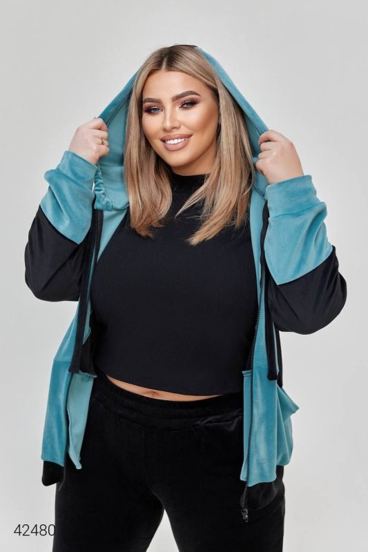 Жіночий прогулянковий костюм батал 42480 блакитний